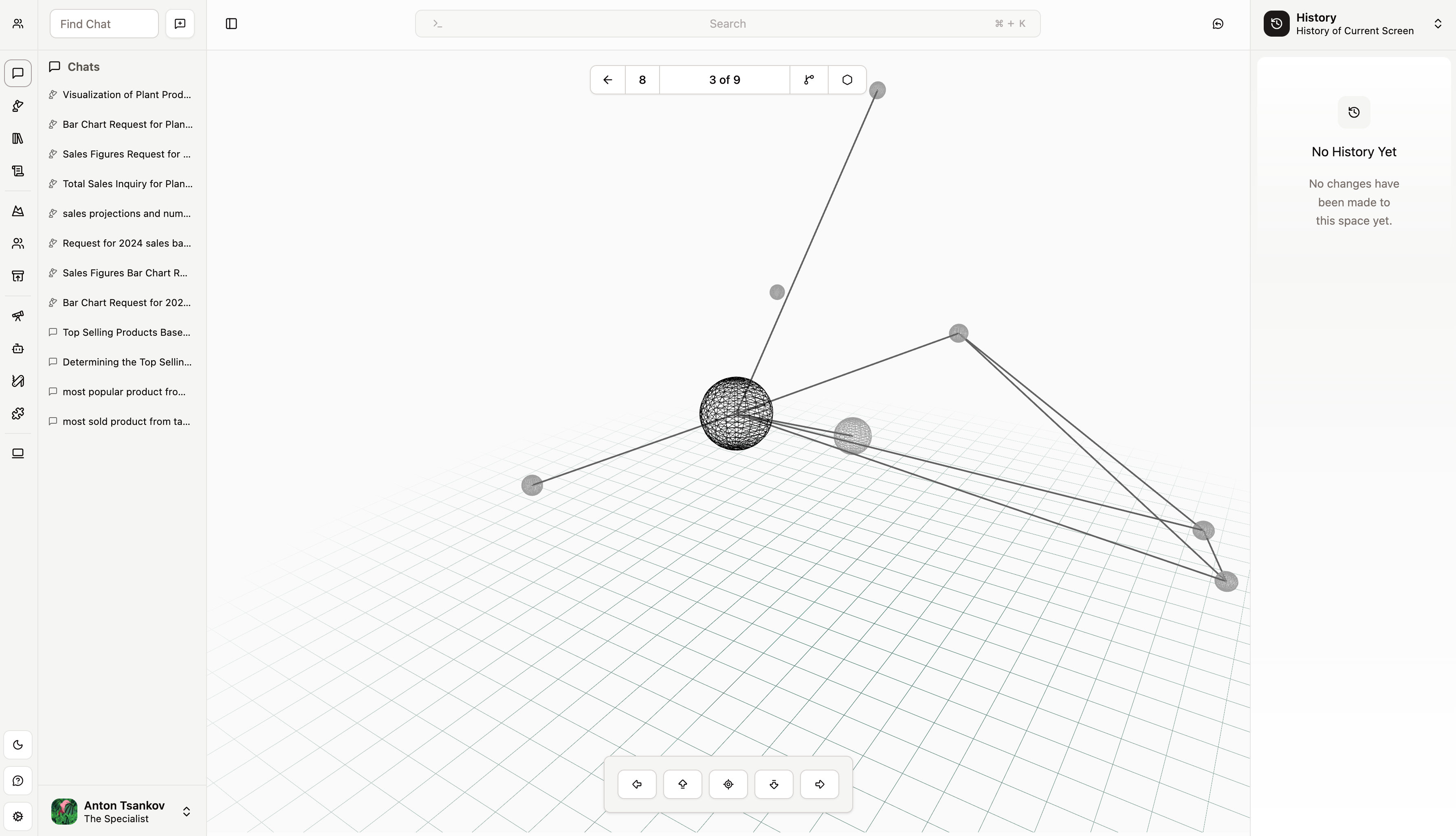 Navigate your AI conversations in a dynamic 3D space. Zoom, rotate, and explore interactive nodes and connections that bring every interaction to life.